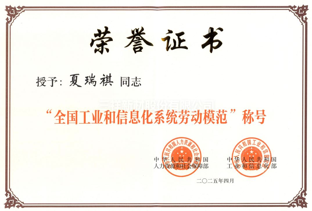 匠心鑄就榮耀!三祥新材總經(jīng)理夏瑞祺榮膺“全國工信系統(tǒng)勞動模范”